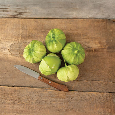 Originaire d'Amérique centrale, la tomatillo est un petit fruit mesurant 5cm/2pouces, vert, recouvert d'une enveloppe de papier (comme une cerise de terre, son cousin). Il est utilisé dans plusieurs sauces et recettes mexicaines. Espacement de 24-36 pouces entre les plants. Très productif. 60-70 jours.