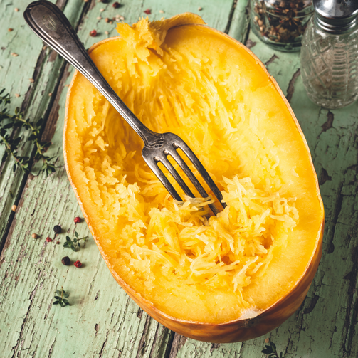 La courge spaghetti doit son nom à la texture de sa chair, qui ressemble à des spaghettis lorsqu'on la sépare avec une fourchette après la cuisson. Sa peau lisse est jaunâtre ou blanchâtre, parfois rayée. Sa chair est d'un jaune très pâle tirant parfois sur le vert. La courge spaghetti contient peu de calories. Elle est un excellent substitut aux pâtes alimentaires. Cuite et refroidie, on la met dans les salades ou on l'arrose de vinaigrette. On la consomme et on l'apprête souvent crue et râpée.